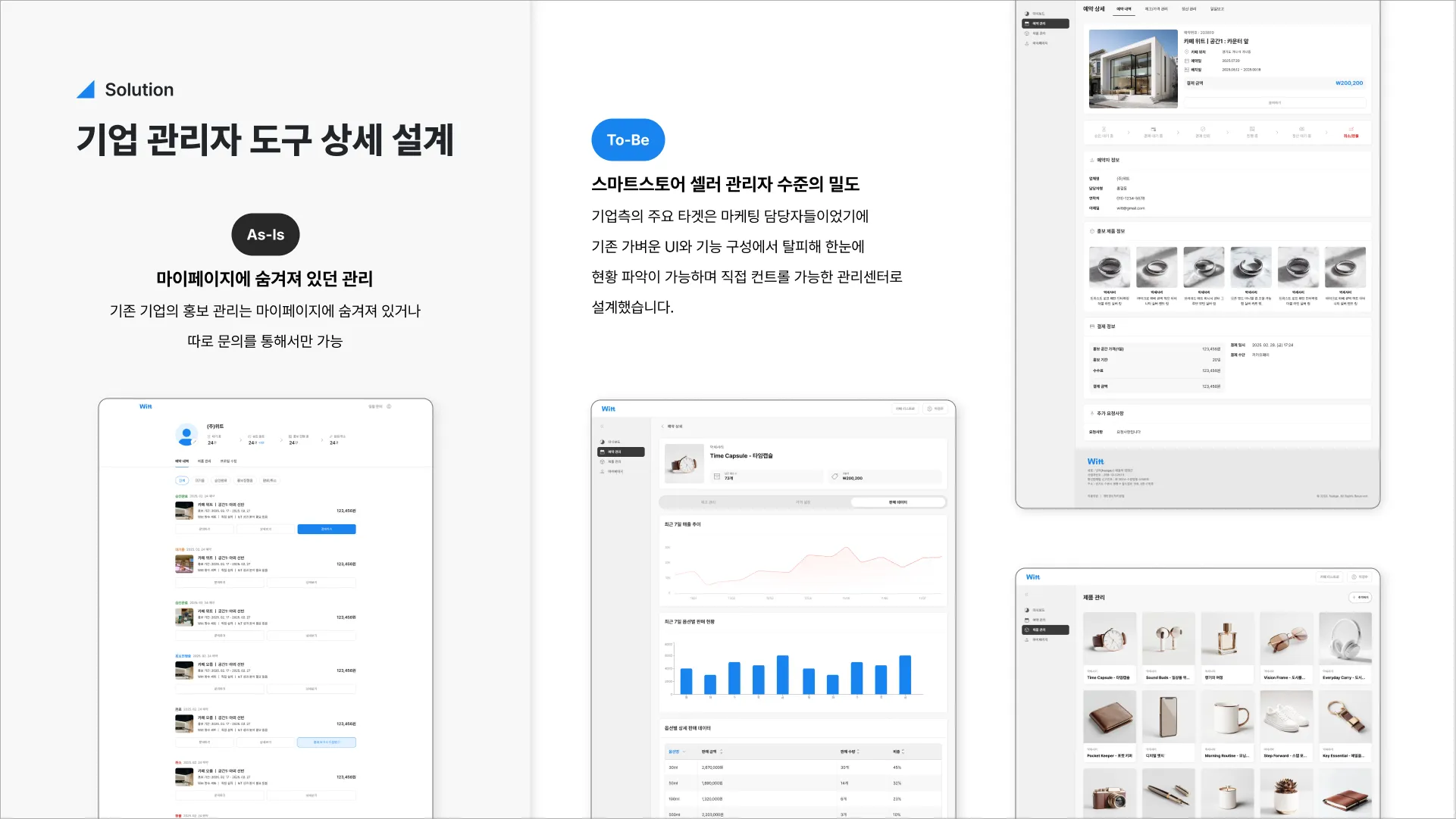 문제 정의부터 타겟별 UX 방향 설정, 관리센터용 디자인 시스템 재구축, 3개 플랫폼 기획·디자인·핸드오프까지 전 과정을 주도했습니다.